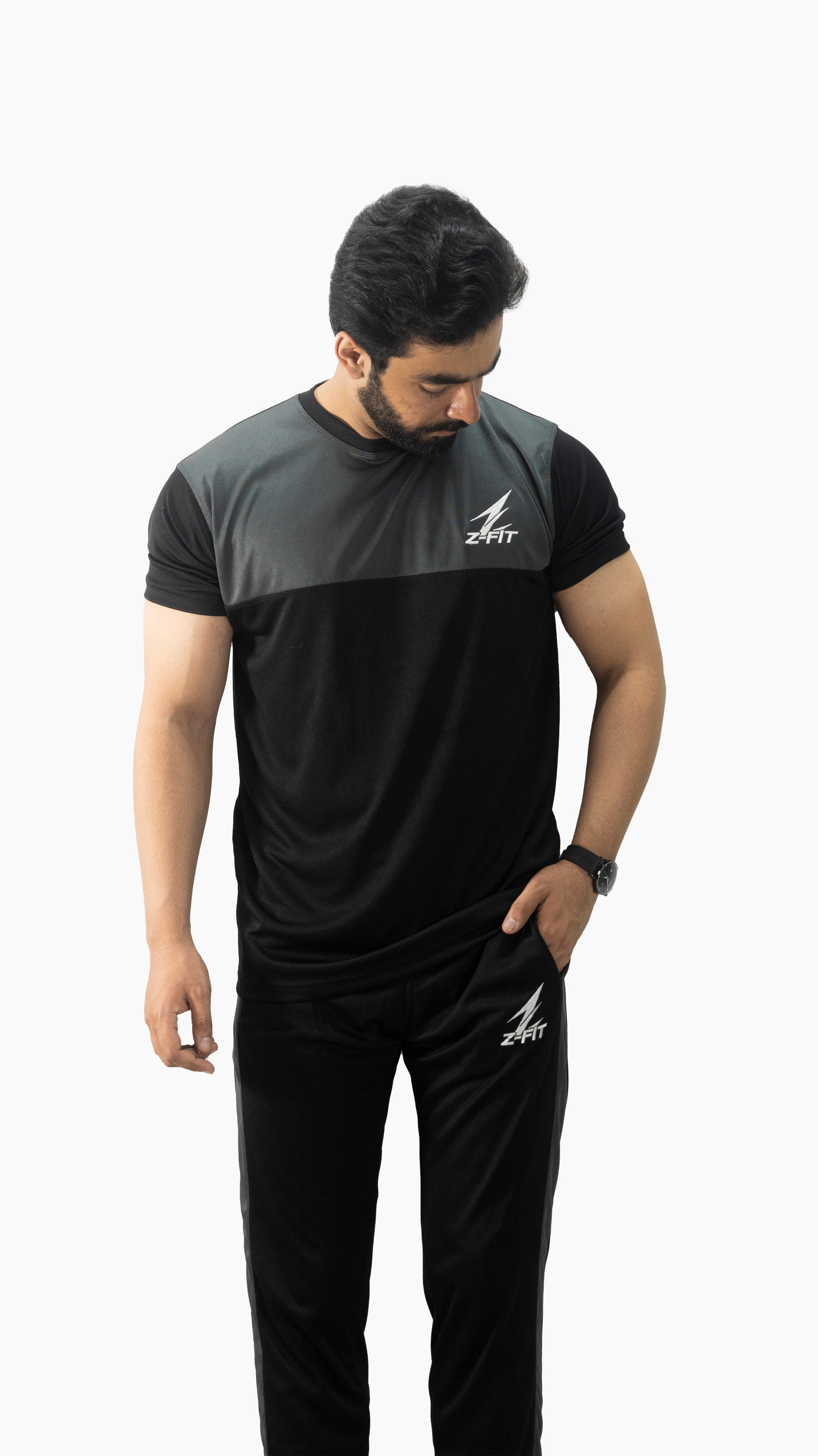 Sleek and Streamlined Design: A fresh black and grey combination with minimalist detailing, featuring the signature Z-Fit logo for a modern athletic vibe.